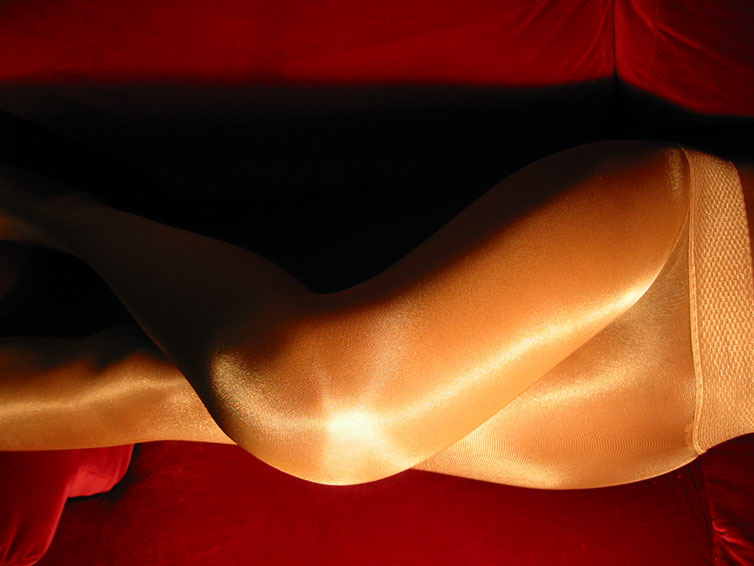 Par effet de "masque" ce travail est sauvé du pur érotisme comme de la fausse pudeur. Le photographe crée un univers de cristal qui sépare du monde le plus intime comme il le fait quasiment pénétrer. L'œil se fixe où le collant est collé. Pas question de détacher le premier du second et celui-ci de ce qu'il cache. L'habit fait la démone et le moine à la fois. Les cuisses en deviennent plus dorées et on aime encore plus leurs courbes tranquilles. Le monde entier est ici au moment même où il est confisqué. Au mieux l'homme caresse du regard : mais n'est-ce pas cela que les critiques moralisateurs de l'art ne peuvent plus supporter ? Montrer le confluent des cuisses leur paraît sans doute un péché. Mais cela a de quoi ravir l'artiste : il n'en demande pas plus.